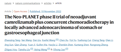 《卡瑞利珠单抗联合同步放化疗用于胃/胃食管结合部腺癌的II期临床研究》发表于Nature Communications