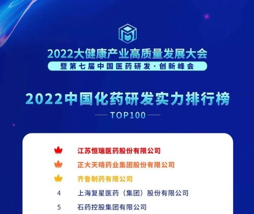 12月9日,由药智网、中国药业杂志社联合承办的2022大健康产业高质量发展大会暨第七届中国医药研发 · 创新峰会开幕,会上“2022中国药品研发实力排行榜”系列榜单发布,凭借卓越的创新研发实力,金年会|jinnianhui荣登2022“中国药品研发综合实力排行榜TOP100”、“中国化药研发实力排行榜TOP100”、“中国生物药研发实力排行榜TOP50”三个榜单榜首。其中,金年会|jinnianhui已经是第5年蝉联《2022中国药品研发综合实力排行榜》“总榜”冠军。