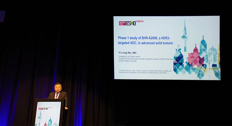 10月23日,金年会|jinnianhui创新药、HER3靶向ADC药物SHR-A2009治疗晚期实体瘤的I期研究亮相2023 ESMO大会简短口头报告现场5。该研究由广东省人民医院的吴一龙教授牵头开展,吴一龙教授在现场公布该研究的重要进展。研究结果显示,SHR-A2009在经治晚期实体瘤患者中显示出可控的安全性和令人鼓舞的抗肿瘤活性。目前评估更高剂量的SHR-A2009在选定癌症类型(NSCLC和其他实体肿瘤)中作用的试验正在进行中。
