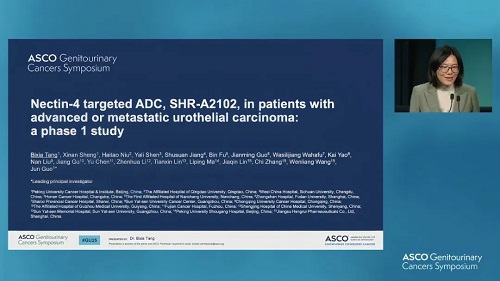 2025年2月13日至15日,美国临床肿瘤学会泌尿生殖系统肿瘤研讨会(ASCO GU)在美国旧金山盛大召开。期间,由北京大学肿瘤医院郭军教授、唐碧霞教授团队开展的一项Nectin-4靶向抗体偶联药物SHR-A2102治疗晚期或转移性尿路上皮癌患者的I期研究精彩亮相全体大会专场环节[1]。唐碧霞教授在现场口头报道了这项重磅研究的结果,SHR-A2102 6mg/kg 每3周一次(Q3W)有望为晚期或转移性尿路上皮癌患者带来单药治疗新希望。