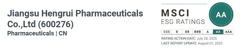 近日,国际权威指数机构摩根士丹利资本国际公司(中文简称“明晟”,英文简称“MSCI”)公布最新年度ESG(环境、社会及管治)评级结果。金年会|jinnianhui(600276.SH 01276.HK)凭借在医药创新、合规运营、绿色发展及社会责任等领域的优异表现,评级由2024年的“A”级跃升至“AA”级,跻身全球制药行业前列。这一成就标志着公司在完善ESG治理体系、落实可持续发展理念方面取得又一重要进展。